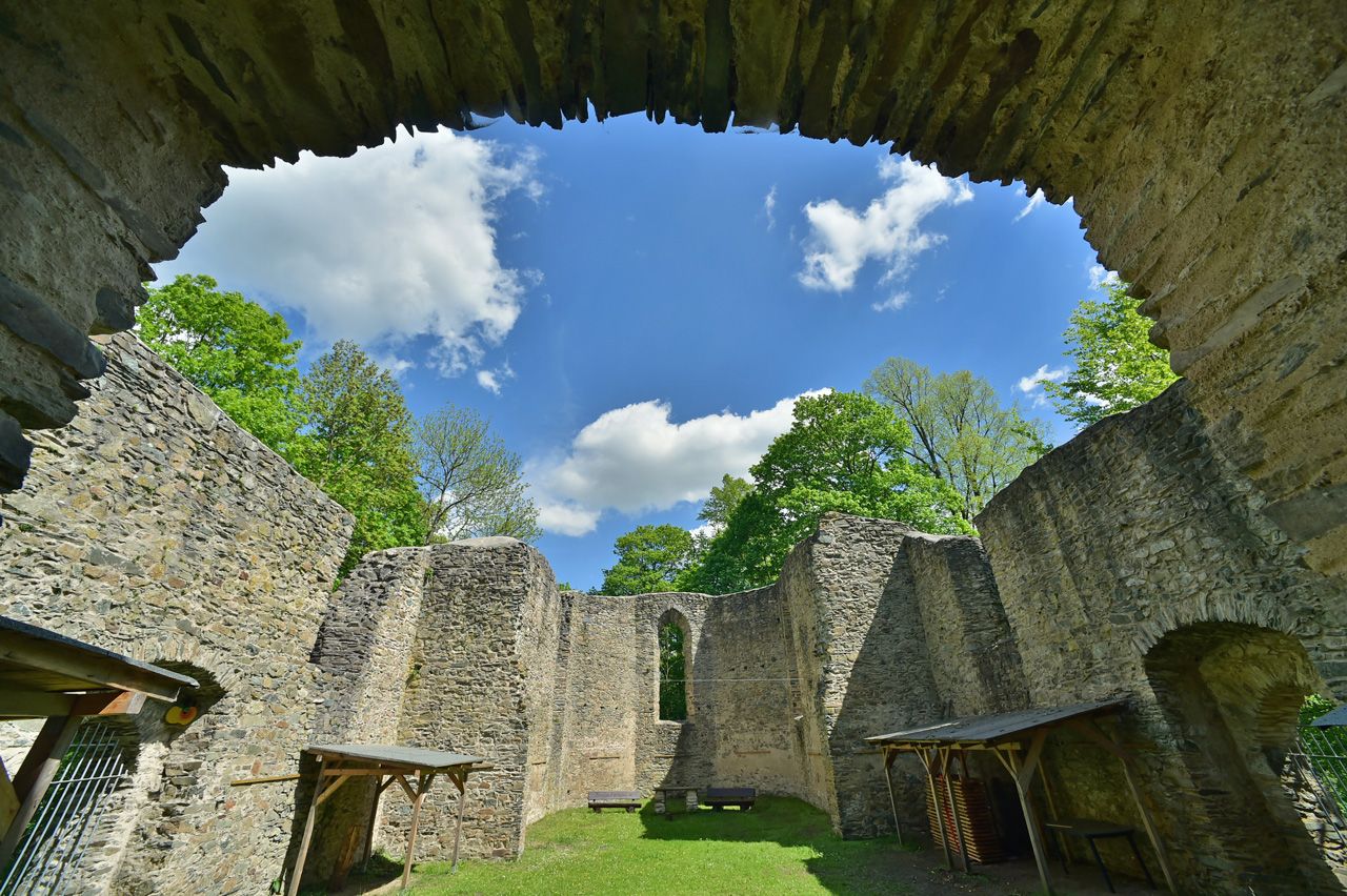 Die Ruinen zweier spätmittelalterlicher Wallfahrtskirchen auf dem Burgstein sind ein imposantes Baudenkmal, eingebettet in ein malerisches Landschaftsgebiet im Vogtland. - Einzigartiges Ambiente